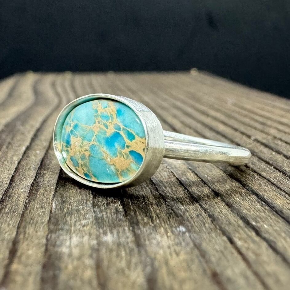 爽やかなブルーと独特の模様が印象的なリングになりそうです。