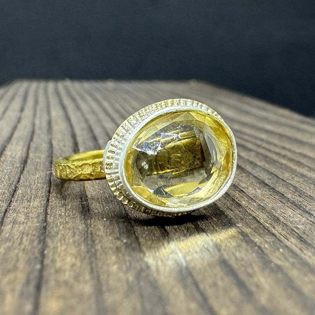 淡い黄色がキラキラしていてとても綺麗な石で存在感があります。