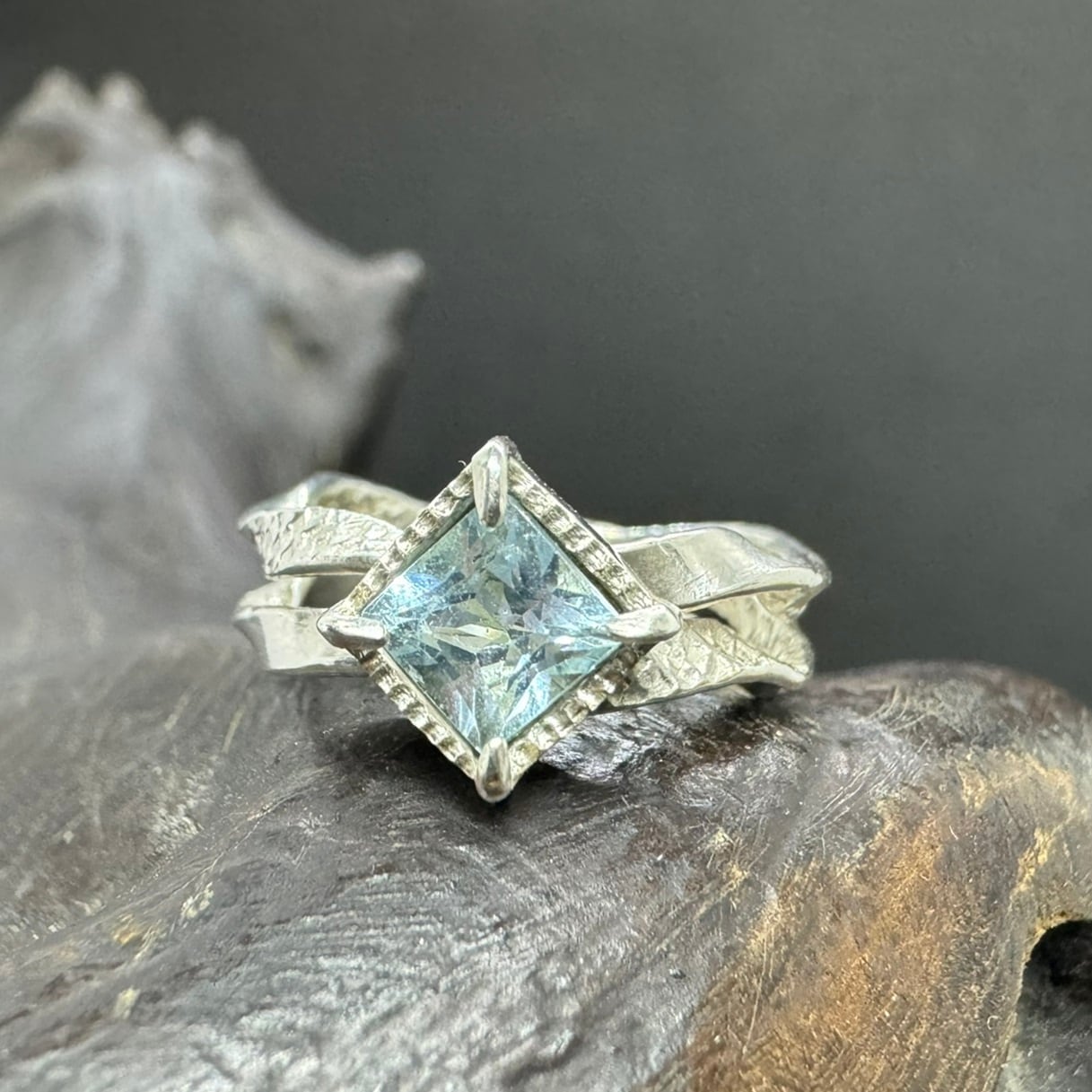 淡いブルーでスクエアファセットカットのスカイブルートパーズです。