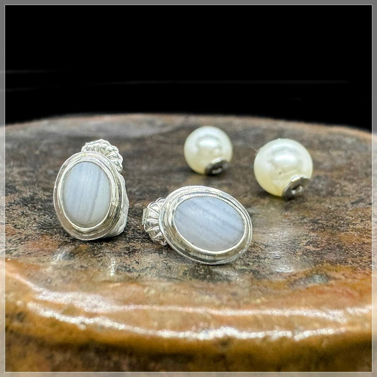 小さめ楕円形ブルーレースアゲートのピアスです。