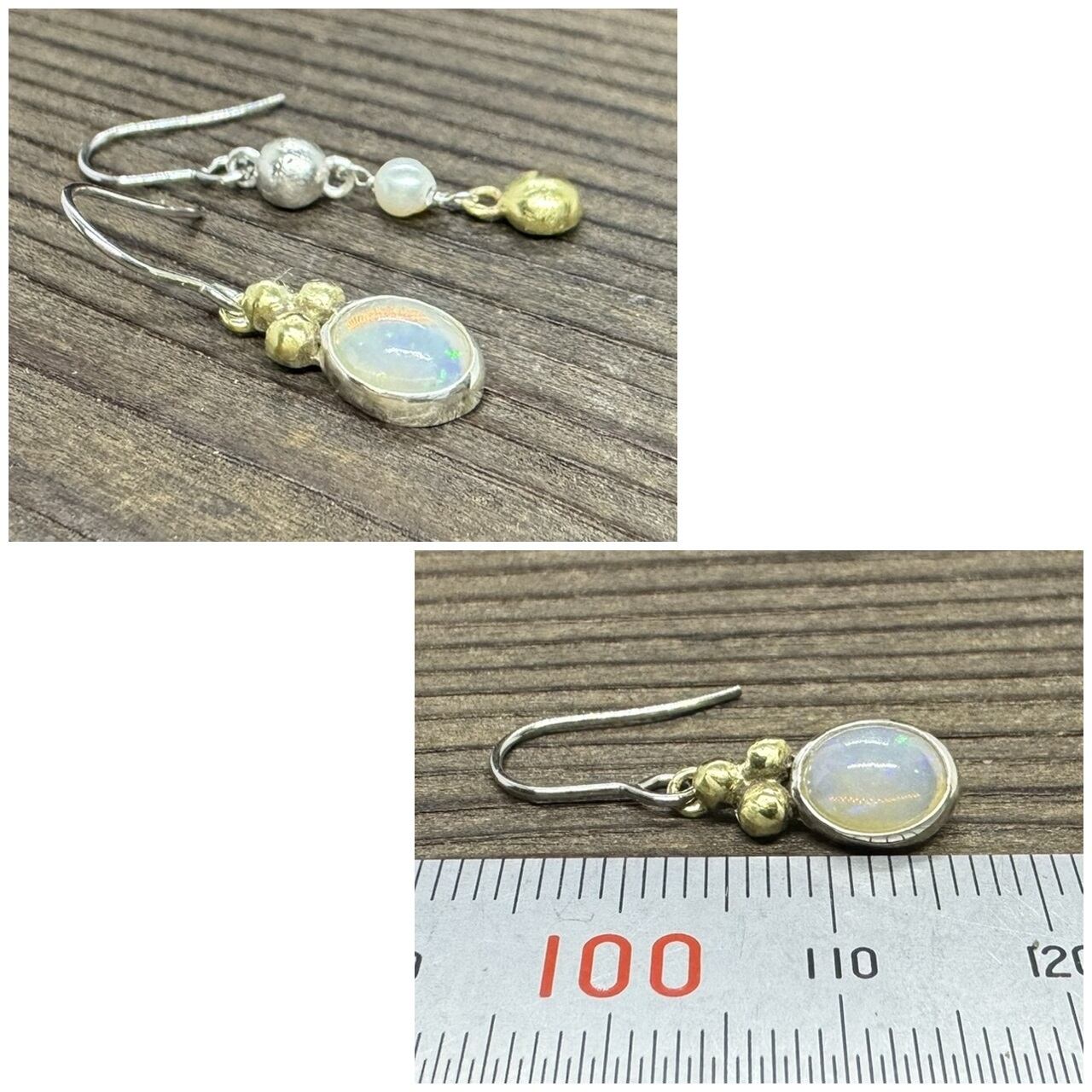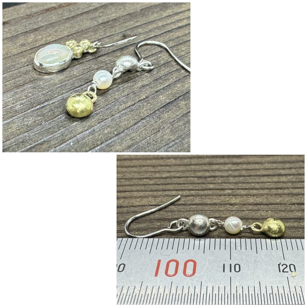 もう片方はシルバーの粒、淡水パール、真鍮の粒を合わせています。