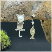 もう片方には小さな粒の花と真鍮で作った焼き魚を合わせてみました。