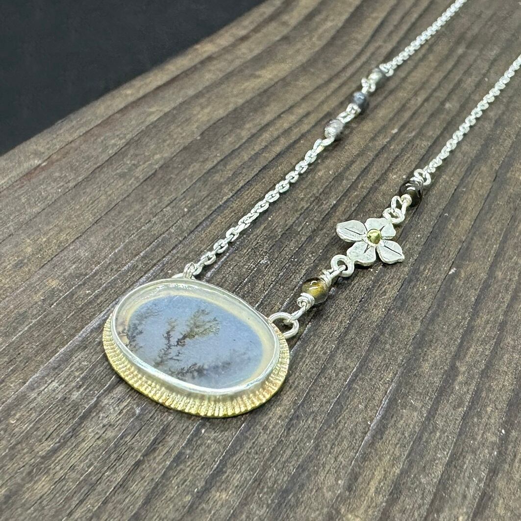 デンドリティックアゲート/シルバー950/真鍮/アイオライト