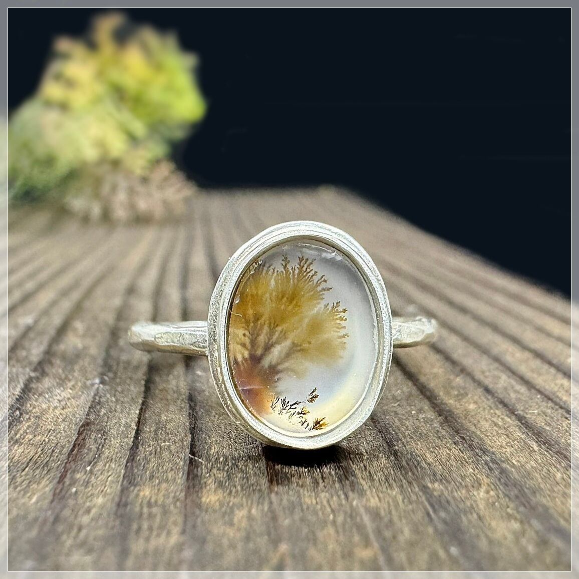 ちょこっと覗いた薄い茶色の樹木模様が可愛い石です。