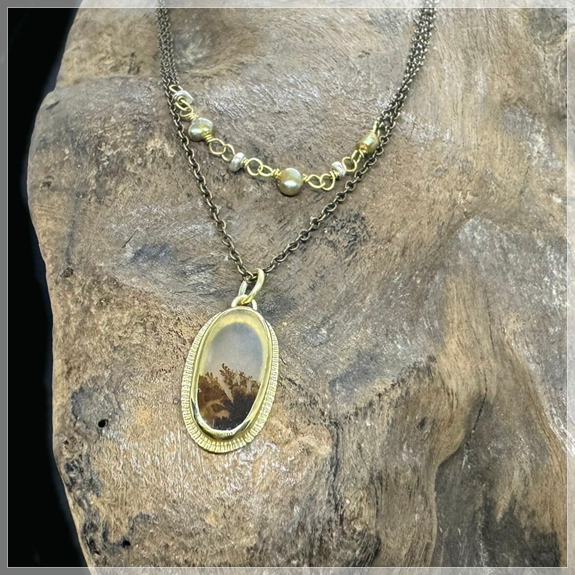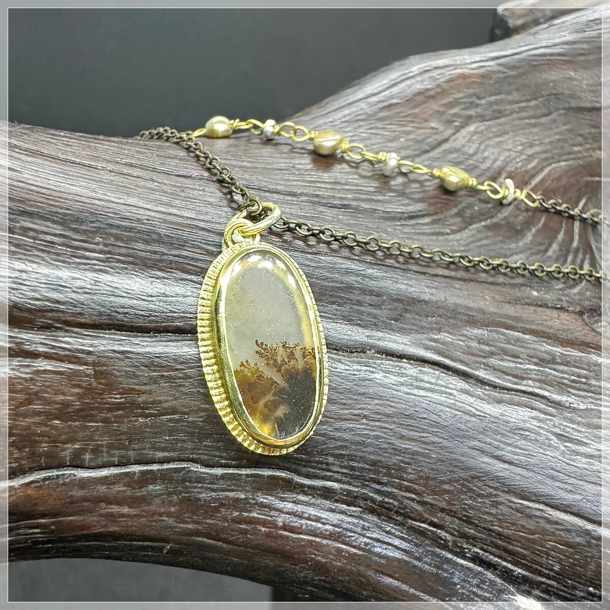細長い楕円形のデンドリティックアゲートを使ったネックレスです。