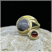 石は真鍮で囲み、ちょこんとツノをつけてアクセントにしました。