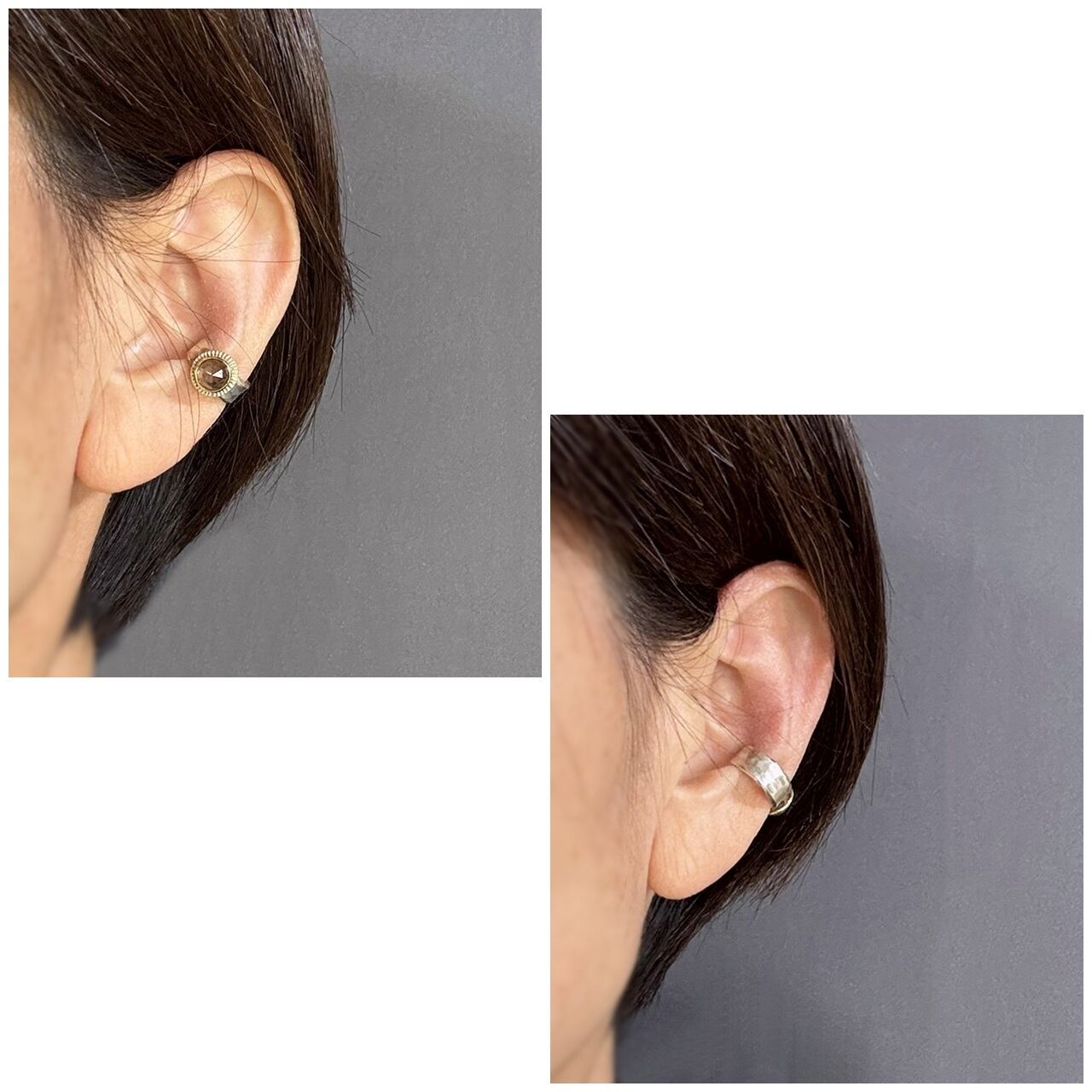 スモーキークォーツを後ろ側にもっていくとシルバーだけのシンプルなイヤーカフとしてもお使いいただけます。