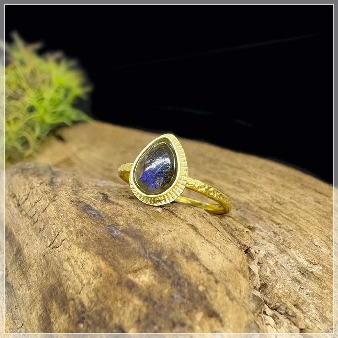 石は真鍮で囲み、周りに細かな飾りを入れて石を引き立てました。