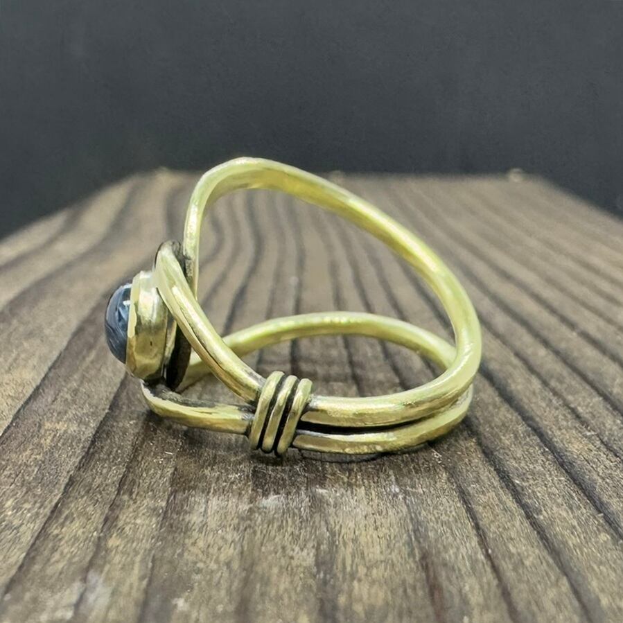 小さな丸の方には細い真鍮線を3周巻き付けてアクセントにしています。