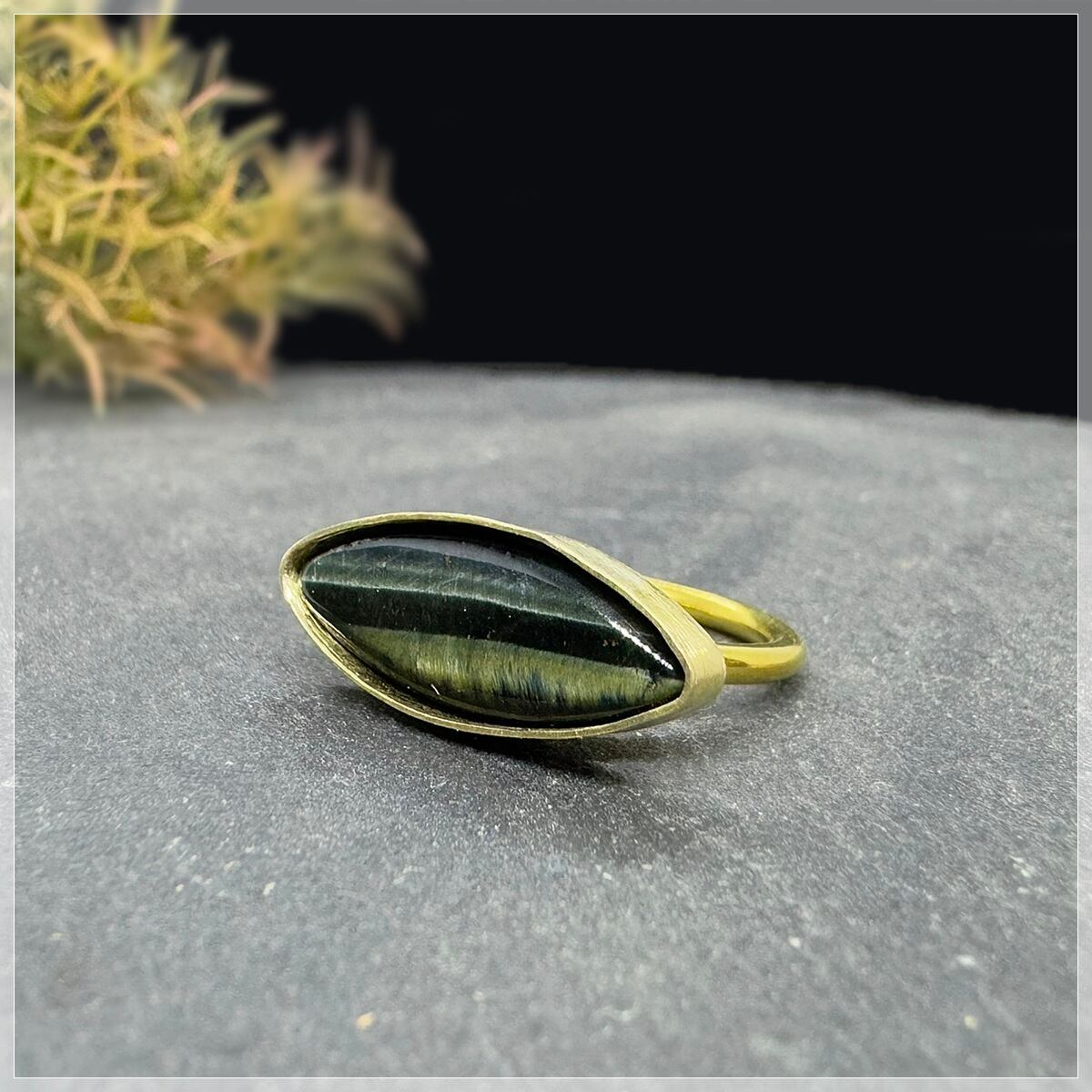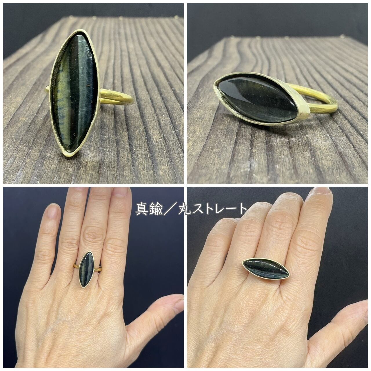 シュッとカッコいい形のブラックタイガーアイは縦長でももちろん、横長にセットしても大胆で存在感のあるカッコイイ指輪になりそうです。