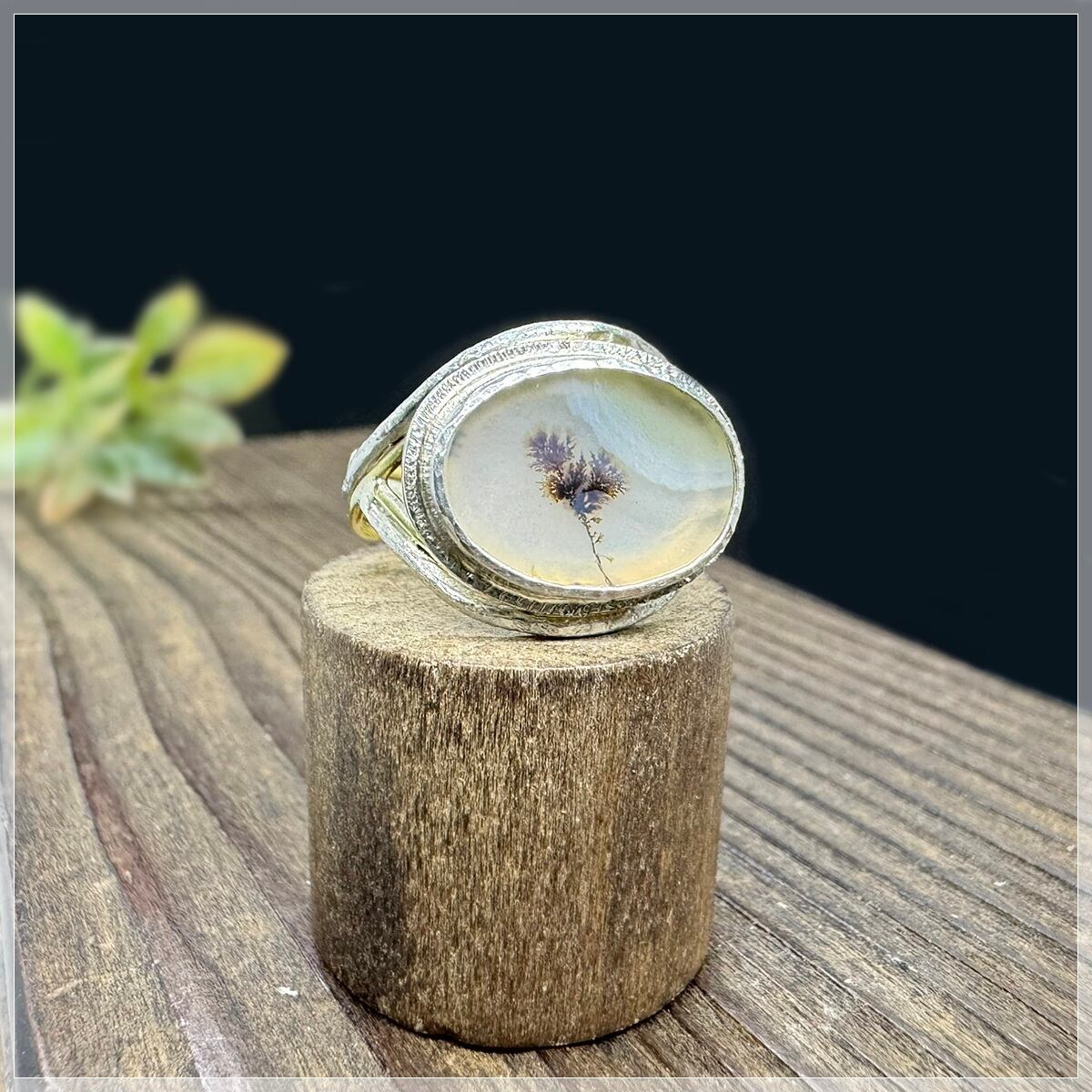 奥に景色が広がる絵画のような模様で、アゲート部分もいい雰囲気の石です。
