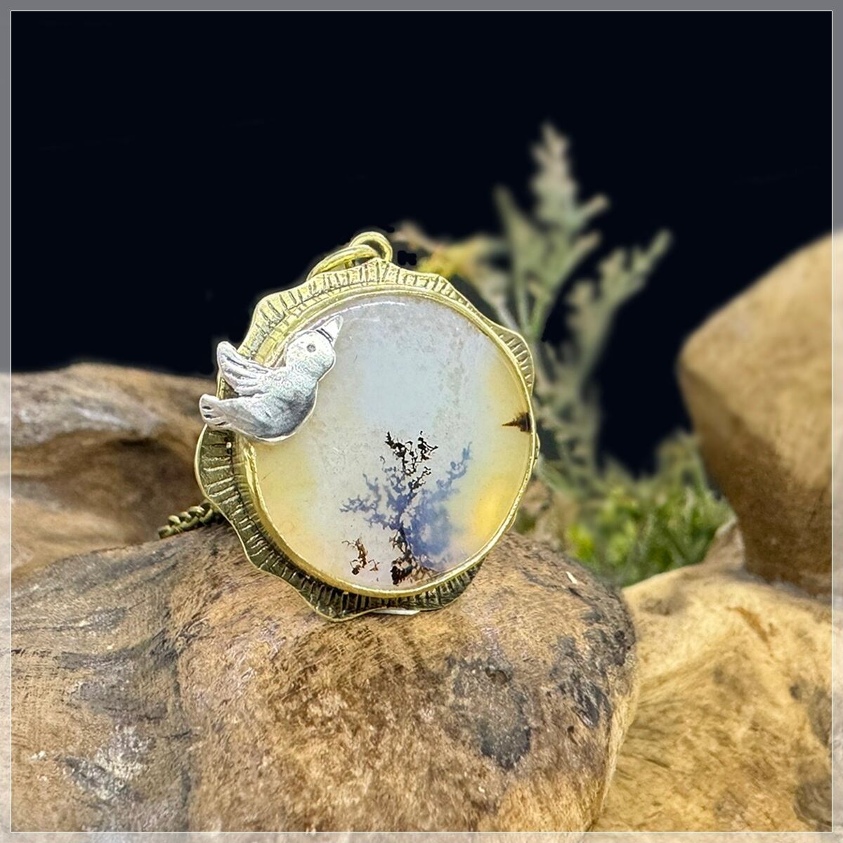 デンドリティックアゲート/真鍮/シルバー950