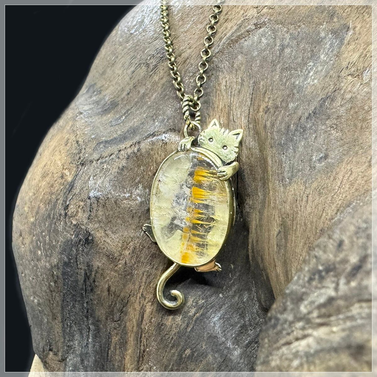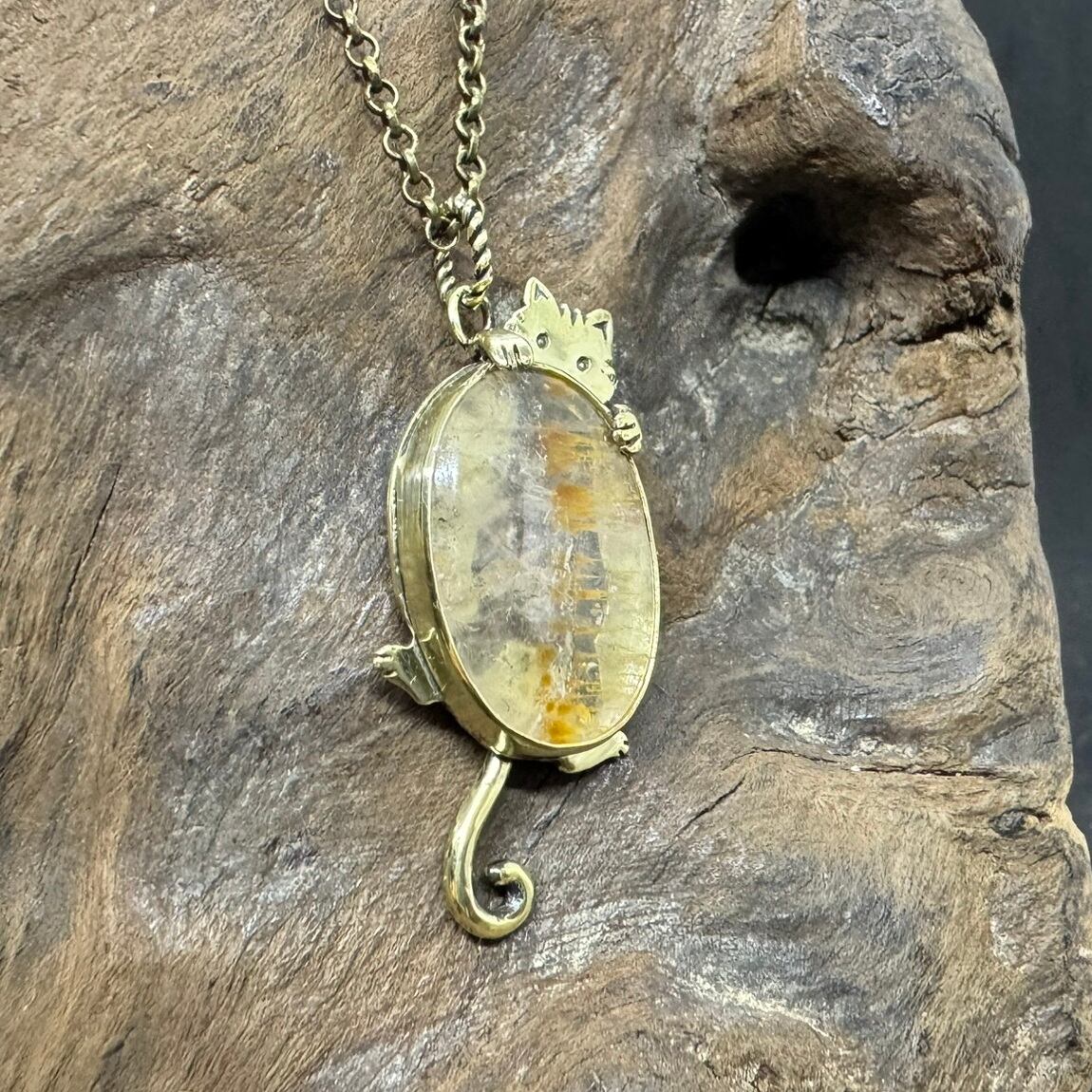 大きめ楕円形のカコクセナイトのネックレスです。